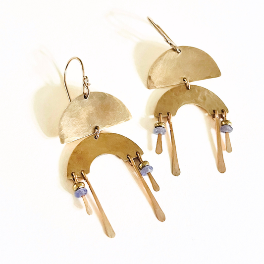 Garnet, Labradorite, Moonstone, Glass and Gold Leaf Earrings