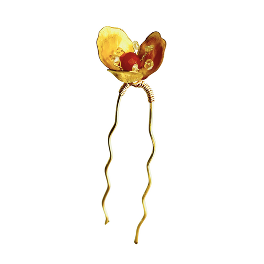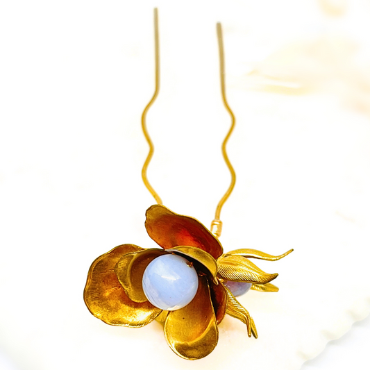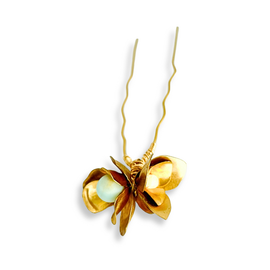 Bloom Trio Hair Pin - Floral Brass and Semi-Precious Beads