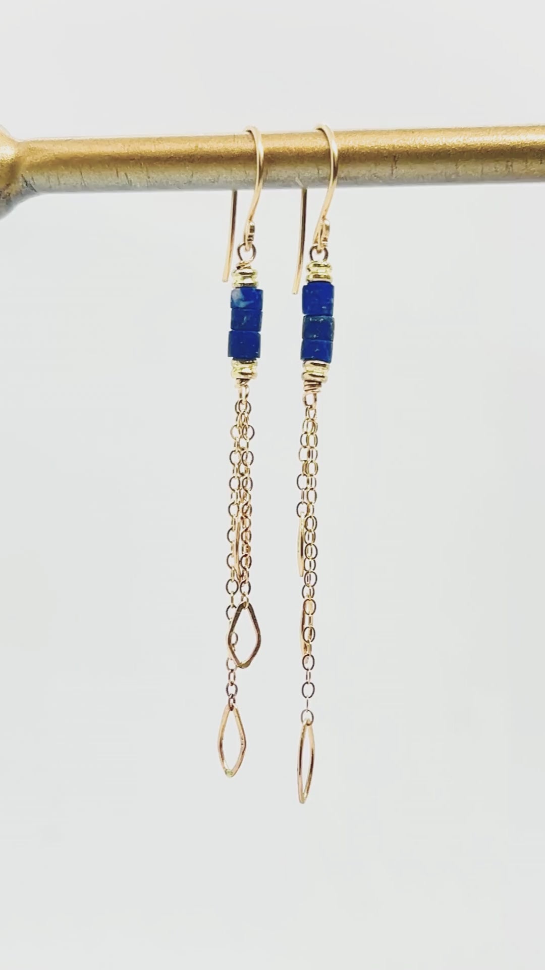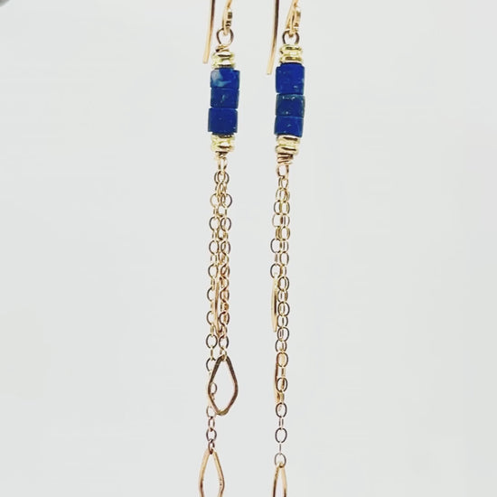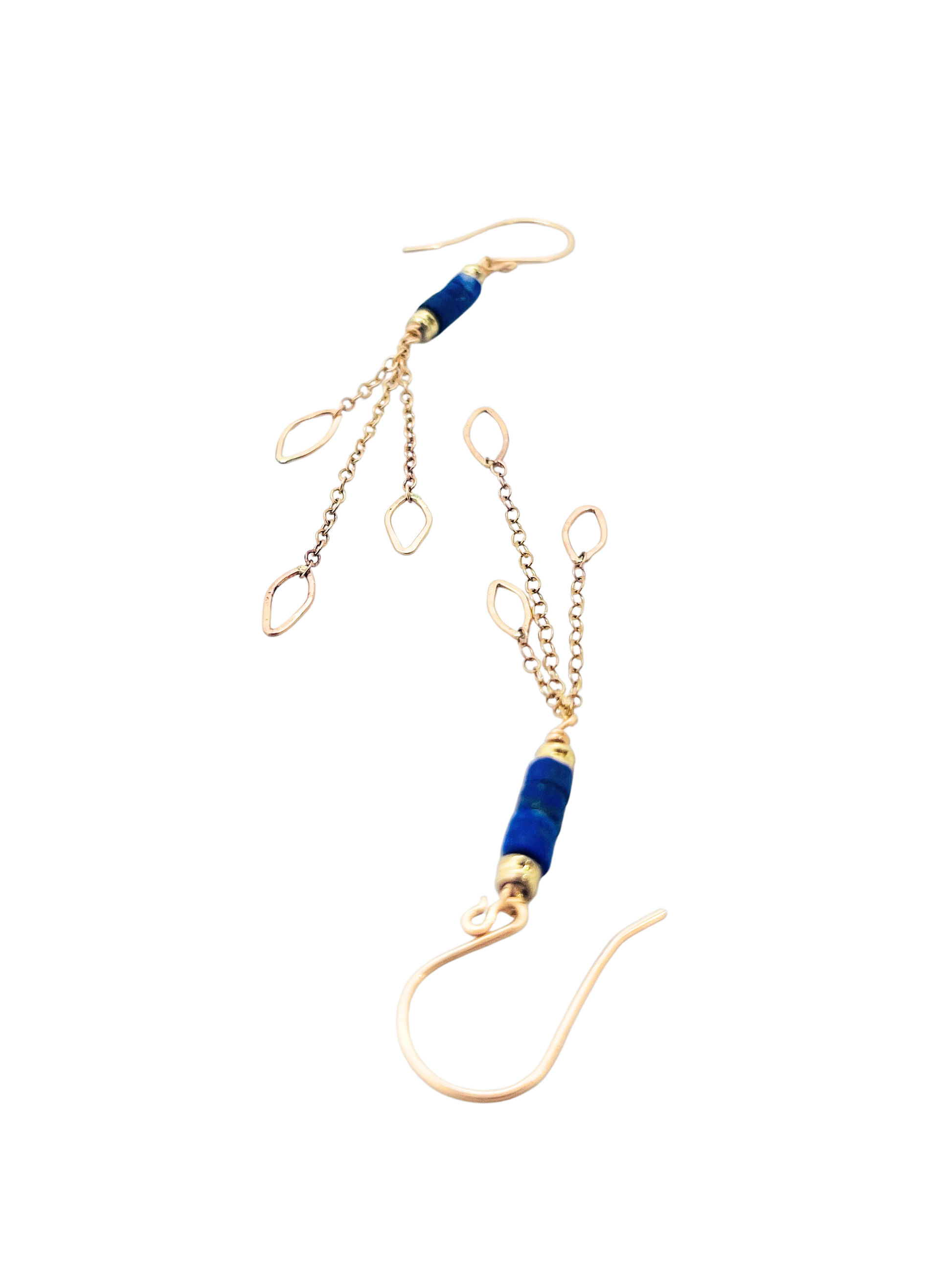 Lapis Heishi Leaf Trio Chain Earring